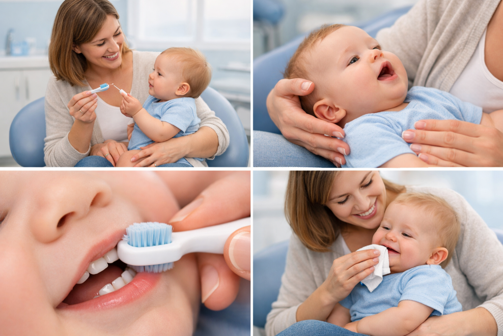 Escovar os dentes do bebê desde o início ajuda a prevenir cáries e cria um hábito importante para a saúde ao longo da vida.